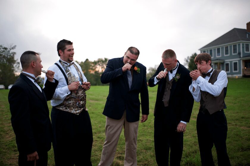 This wedding combined all of Heather & Ted’s favorite things and hobbies. Heather is an avid rider and lover of horses and Ted a bird lover and duck hunter. All of these things were woven into their day from the tractor full of beer to the cowboy boots that both bride and groom wore to Ted’s custom wedding ring that Heather had designed to look like duck tags complete with an etching of a duck caller on the back side. Heather also had cake toppers made by the national champion decoy carver. Yes…the national champion. Cool! And very sweet too. Did you know that geese mate for life?
